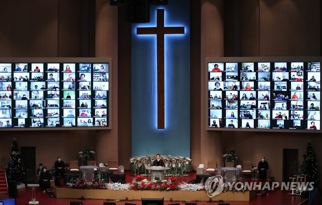 | ▲ 가정에서 비대면으로 성탄 축하 예배 (서울=연합뉴스) 홍해인 기자 = 성탄절인 25일 서울 영등포구 여의도순복음교회 대성전에서 비대면 온라인 중계로 성탄 축하 예배가 열리고 있다. 2020.12.25 hihong@yna.co.kr |
