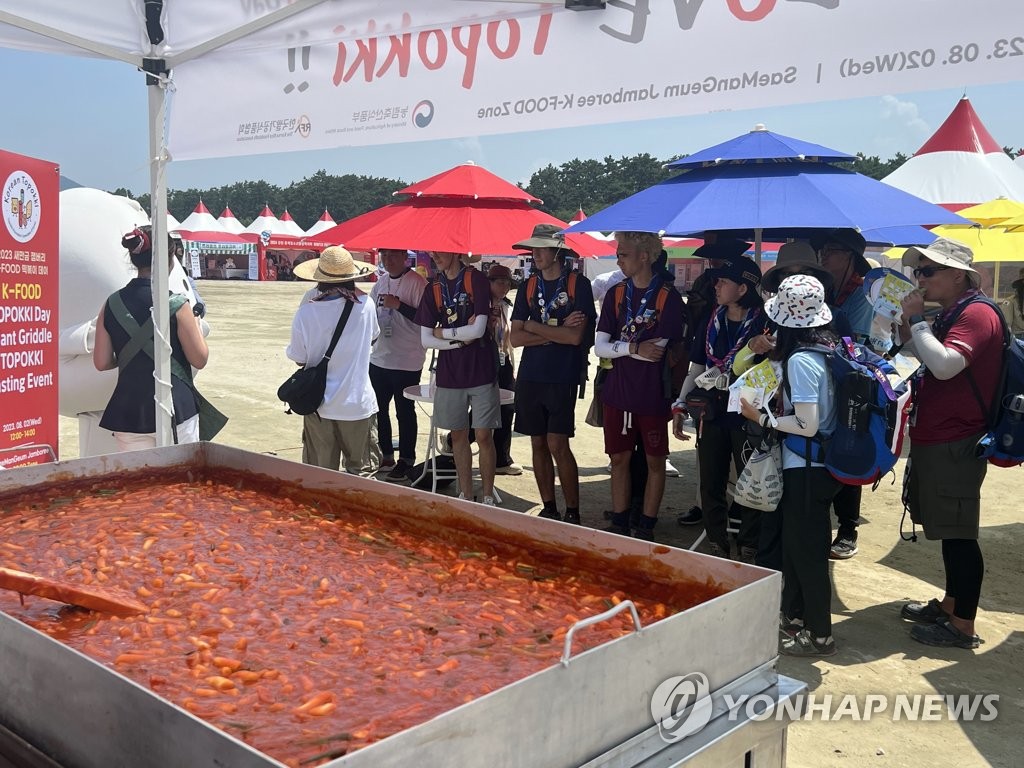 | ▲ 한국 떡볶이 맛보는 스카우트 대원들 (부안=연합뉴스) 김진방 기자 = 2일 전북 부안군 새만금 일대에서 열리는 '제25회 세계스카우트 잼버리' 야영장 델타구역에서 잼버리 참가자들이 떡볶이 체험 행사에 참여하고 있다. 2023.8.2 chinakim@yna.co.kr |