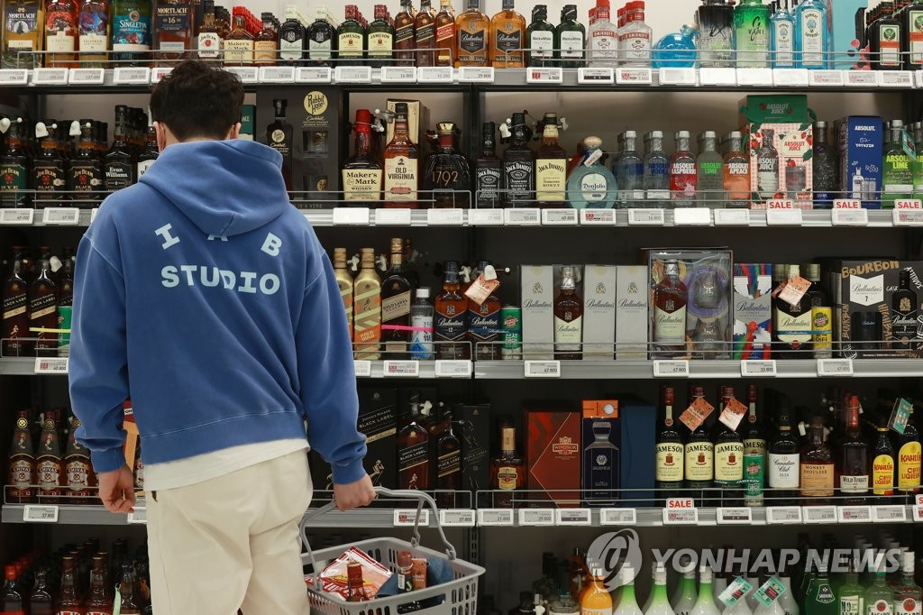 | ▲ '양주 발품' (서울=연합뉴스) 류영석 기자 = 최근 대형마트 등 유통업계에서 양주가 소주의 매출을 넘어서는 등 양주 소비가 늘어나는 가운데 21일 서울 남대문수입상가의 한 주류 판매점을 찾은 시민이 위스키 등 양주를 고르고 있다. 2023.3.21 ondol@yna.co.kr |
