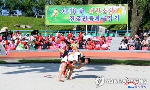 관영매체 추석기사는 아직…지난주 전국민족씨름 경기 개최