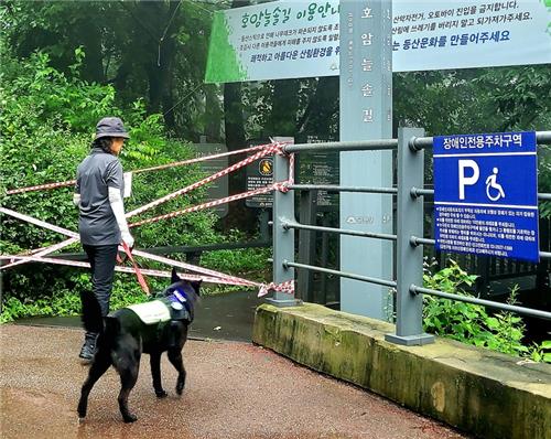 반려견 순찰대는 집중호우 기간 평소와 같은 치안 유지 활동에 더해 하천 범람, 둘레길 산사태, 골목길 배수로 막힘 등 침수 피해 위험 요소를 살폈다.