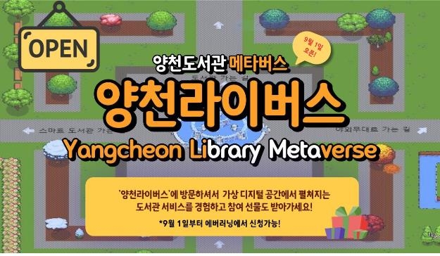양천도서관은 가상 도서관 '양천라이버스'를 통해 ▲ MBTI 유형별 여행지 사진 전시회 ▲ 독서의 달 퀴즈 ▲ 무럭무럭 양천 반려 식물 키우기 등의 행사를 진행한다.