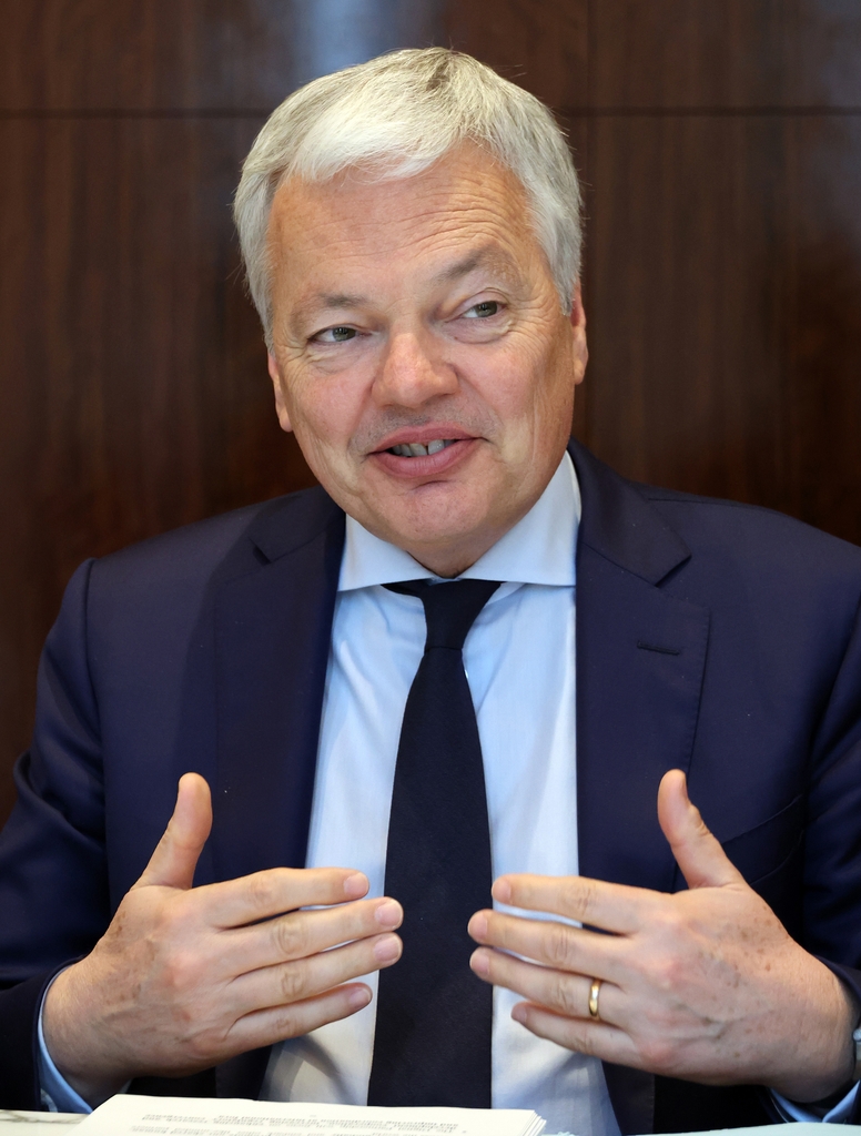 | ▲ Didier Reynders, European commissioner for justice, is interviewed by Yonhap News Agency in Seoul on April 12, 2023. (Yonhap) |