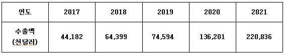 5년 전인 2017년 음반 수출액은 4천418만2천 달러(약 525억원)에 그쳤지만, 2018년 6천439만9천 달러(약 766억원)·2019년 7천459만4천 달러(약 886억원) 등으로 가파르게 증가했다.