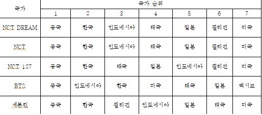 방탄소년단, 세븐틴, NCT 등 국내 주요 대형 아이돌 그룹의 음반을 케이타운을 통해 사간 국가를 살펴보면 중국이 모두 1위를 차지했다. 특히 3위 국가의 경우 NCT 드림과 NCT는 인도네시아, 세븐틴은 필리핀으로 나타났다.