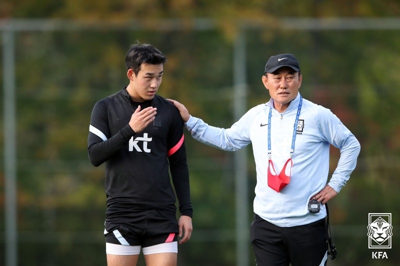 | ▲ 송민규와 김학범 감독 [KFA 제공. 재판매 및 DB 금지] |