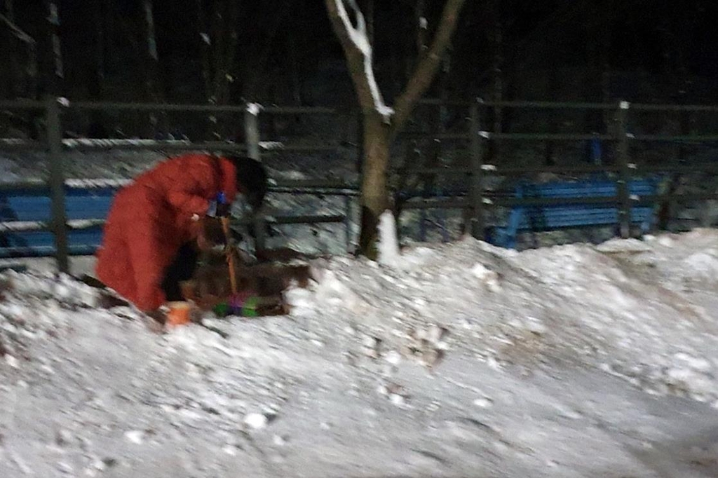 | ▲ '길고양이 급식소 눈치우기' (동두천=연합뉴스) 최근 폭설이 내린 경기 동두천시 소요산의 길고양이 급식소에서 지난 4일 눈 청소를 하는 신춘숙씨. 2021.2.6 [신춘숙씨 제공. 재판매 및 DB 금지] |