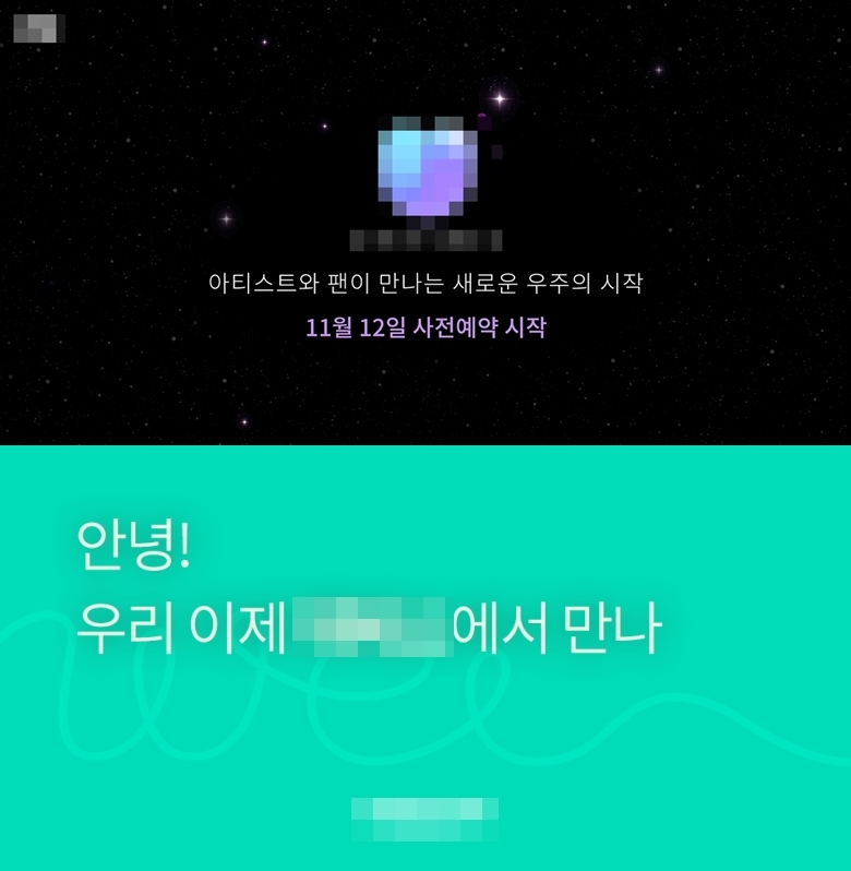 | ▲ A사(위)와 B사(아래)의 K팝 소셜 플랫폼 [A사 및 B사 홈페이지 캡처. 재판매 및 DB 금지] |