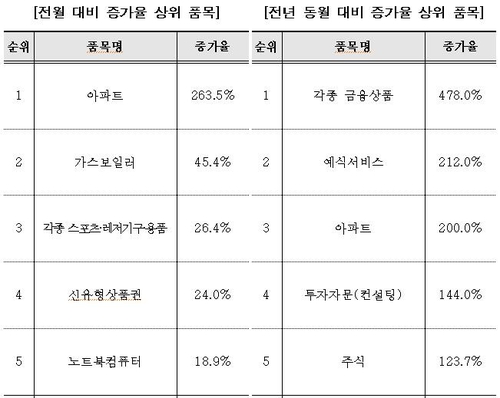 전년 동월 대비 상담 건수가 가장 많이 늘어난 분야는 각종 금융상품 관련 상담으로, 증가율이 478%에 달했다.