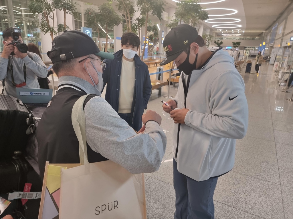 최지만은 공항까지 찾아와 입국을 환영해준 팬들에게 일일이 사인을 해주며 감사 인사를 전했다. 부상을 걱정하는 팬들에게는 "많이 좋아졌다"며 환한 웃음을 보이기도 했다.