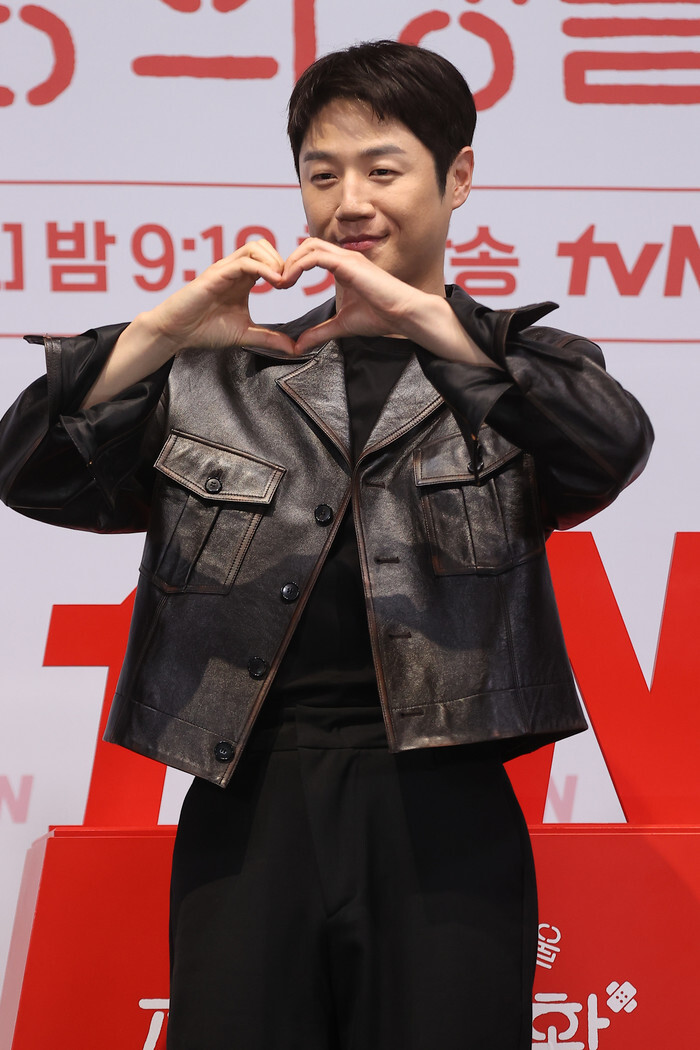 South Korean actor Jung Jun-won, who stars in the new drama "Resident Playbook," poses for a photo during a publicity event in Seoul on April 10, 2025. The first episode of the drama was aired by the local cable TV network tvN on April 12. (Yonhap)