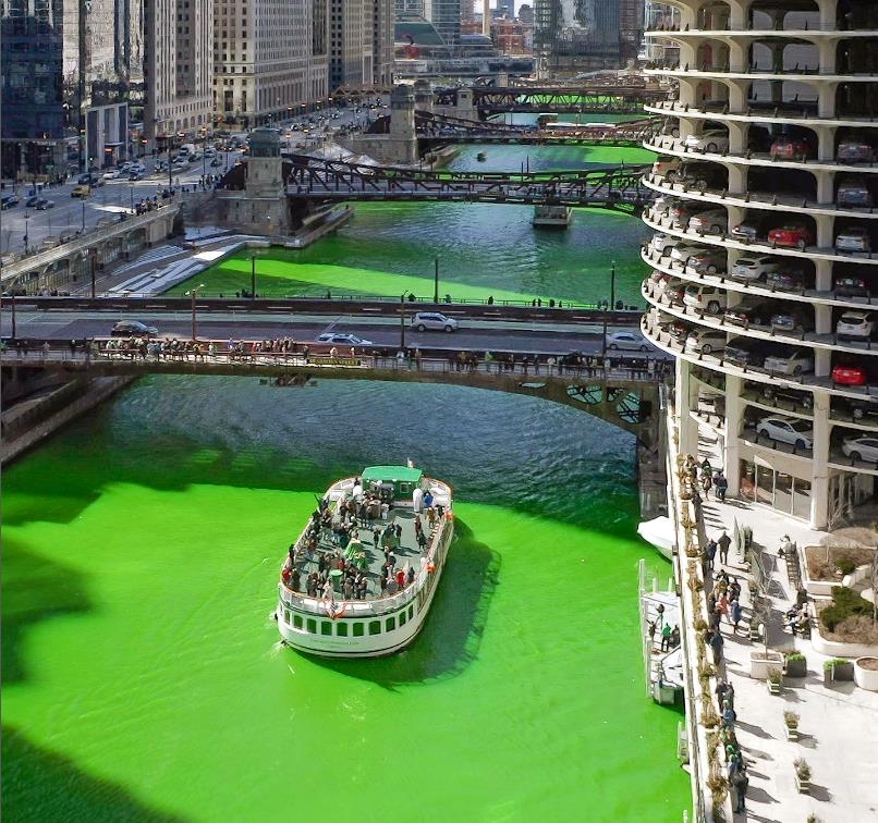 | ▲ '성 패트릭의 날'을 맞아 초록색으로 염색된 시카고강 [시카고 관광청 인스타그램 캡처. 재판매 및 DB 금지] |