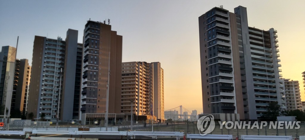 | ▲ 도쿄 올림픽선수촌 아파트 [촬영 박세진] 외장공사가 마무리돼 깔끔한 모습을 한 도쿄 하루미 올림픽선수촌 아파트. 코로나19 때문에 2021년 7∼9월로 연기된 2020도쿄올림픽-패럴림픽이 열리면 참가 선수단은 이곳에서 묵게 된다. |