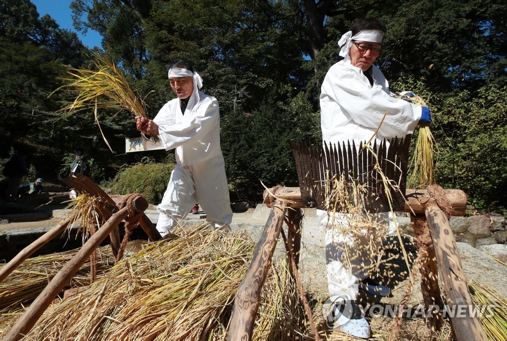 | ▲ 전통 농기구 '그네' 시연 모습 [연합뉴스 자료사진] |