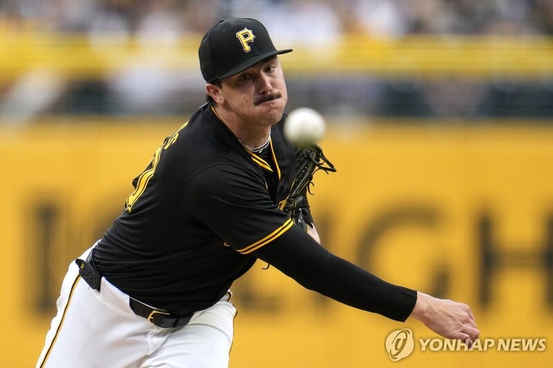 | ▲ 괴물 신인 스킨스 (피츠버그 AP=연합뉴스) 피츠버그 파이리츠의 괴물 신인 스킨스가 6일(한국시간) 미국 펜실베이니아주 피츠버그의 PNC파크에서 열린 2024 미국프로야구 메이저리그(MLB) 로스앤젤레스 다저스와의 홈 경기에 선발 등판해 역투하고 있다. |