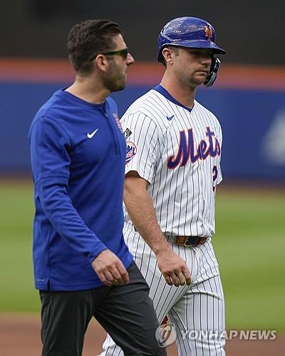 | ▲ 트레이너와 경기장을 떠나는 피트 알론소 [AP=연합뉴스] |