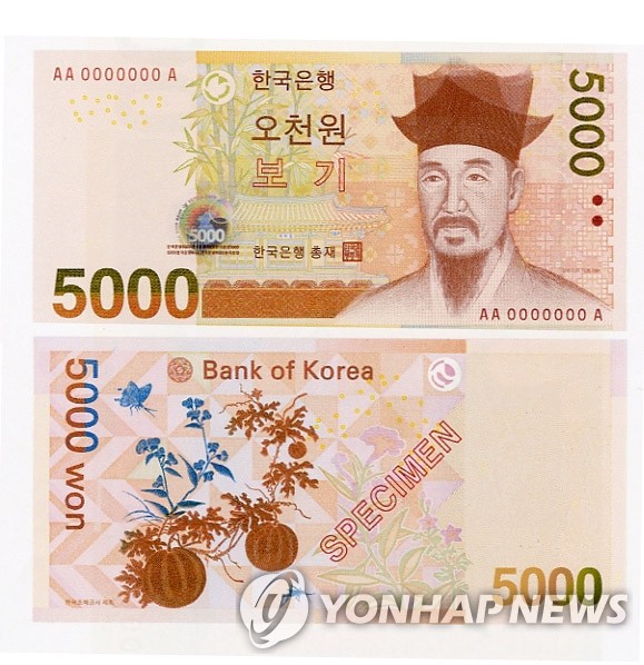 | ▲ 5천원권 지폐도안 [연합뉴스 자료사진·DB 및 재배포 금지] |