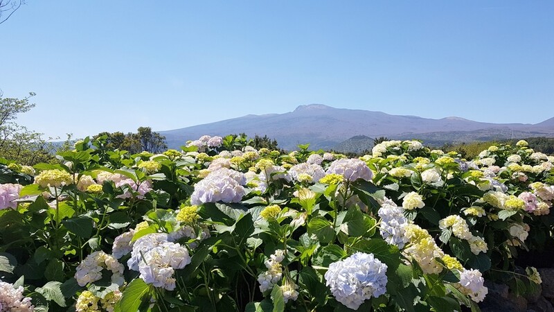 수국은 햇볕이 뜨거워질 때쯤 제주 곳곳에서 활짝 피어난다.