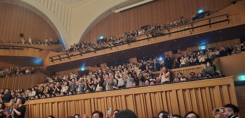 | ▲ 1년6개월 만에 열린 임윤찬의 피아노 독주회에 감격한 관객들 (서울=연합뉴스) 7일 서울 송파구 롯데콘서트홀에서 열린 임윤찬 리사이틀 공연을 관람한 관객들이 기립박수를 하고 있다. 2024.06.07 hyun@yna.co.kr |