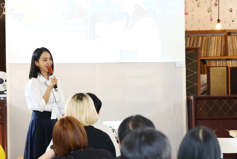 | ▲ 지난 4일 '지구여행' 사진전 일일도슨트로 나선 굿네이버스 홍보대사 신혜선 [굿네이버스 제공] |