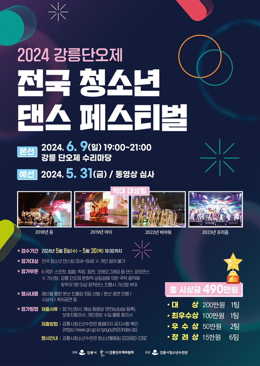 청소년 댄스 페스티벌은 강릉단오제를 통해 청소년들에게 지역 문화재에 대한 인식 확산과 전통문화의 중요성을 알리고 청소년들의 예술적 재능과 역량을 발휘할 수 있는 열린 공간을 제공하고자 마련됐다.