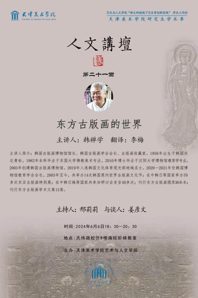 (서울=연합뉴스) 김예나 기자 = 한선학 강원 원주 명주사 고판화박물관장이 이달 6일 중국 톈진(天津) 미술학원에서 특별 강연을 한다고 박물관이 3일 밝혔다.