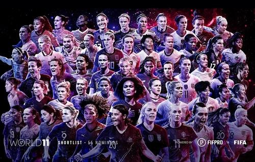 | ▲ 지소연(아래서 둘째 줄 끝에서 세 번째) 등 FIFA-FIFPro 월드 일레븐 여자 후보 55명 [FIFPro 홈페이지 캡처. 재판매 및 DB 금지] |