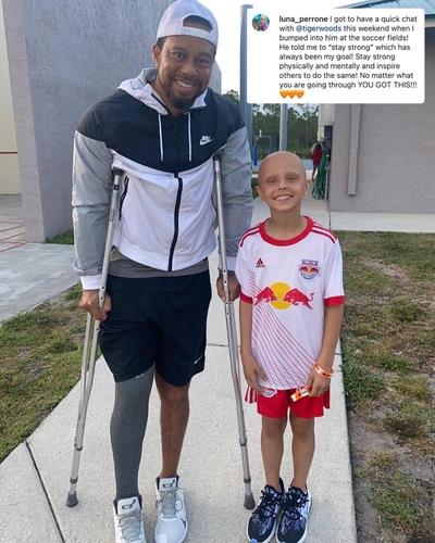 4월 반려견과 함께 있는 사진을 공개했던 우즈는 "목발을 짚고 다니는 것이 운동이 돼서 그런지 그 사진을 보면 내 어깨가 크게 나왔다"고 말하기도 했다.