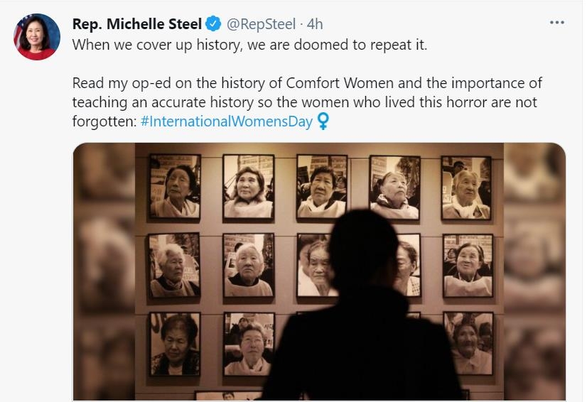 스틸 의원은 이날 세계 여성의 날을 맞아 폭스뉴스에 기고한 글에서 "일본군의 위안부 여성 집단노예화는 일본 역사에서 추악한 오점"이라며 "의회에 있는 내 동료들과 진실을 걱정하는 사람들에게 램지어 논문을 규탄할 것을 촉구한다"고 밝혔다.