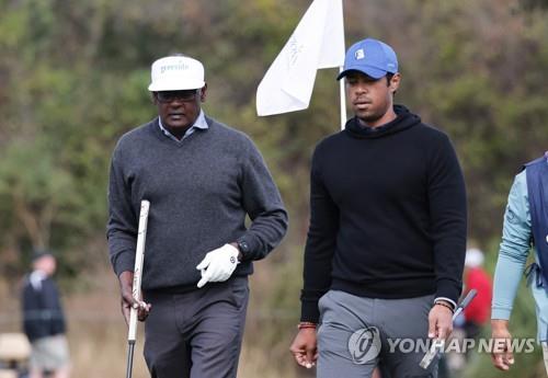 (서울=연합뉴스) 권훈 기자 = 똑같이 다리가 아픈 타이거 우즈(미국) 부자가 미국프로골프(PGA) 챔피언스투어의 이벤트 대회인 가족 골프 대회 PNC 챔피언십에서 기대했던 역전 우승을 이루지 못했다.