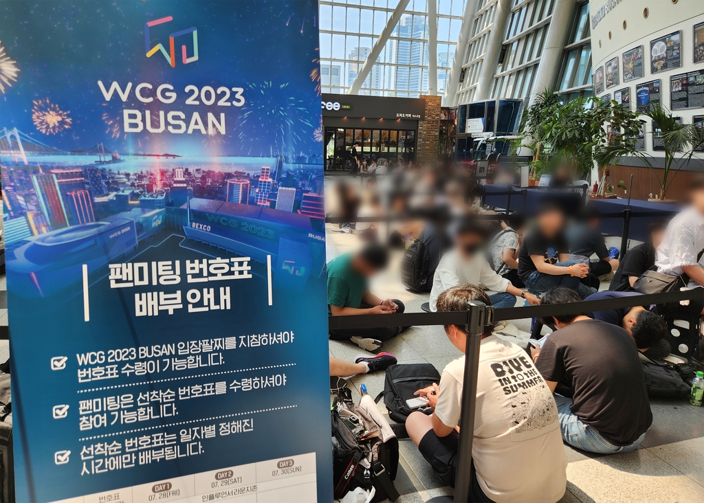 행사장 바깥의 번호표 발급 부스에는 WCG가 문을 열기 한참 전인 이른 아침부터 긴 줄이 생겼다.