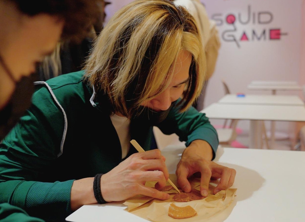 드라마 속 달고나를 직접 만드는 가게에는 너도나도 이정재처럼 우산 뽑기를 해보려는 시민들로 모여듭니다.