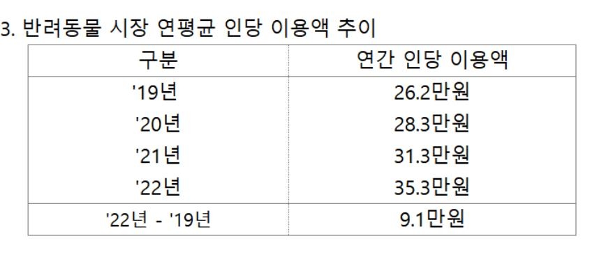 | ▲ 반려동물 시장 연평균 인당 이용액 추이 [신한카드 빅데이터연구소 제공] |
