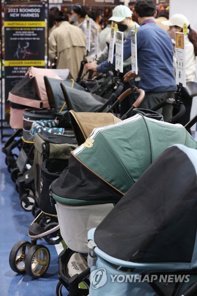 | ▲ 반려동물 유모차 (서울=연합뉴스) 강민지 기자 = 24일 오전 서울 강남구 세텍에서 열린 반려동물 박람회 '2023 케이펫페어 서울'에서 참관객들이 반려동물 유모차 등을 둘러보고 있다. 2023.3.24 mjkang@yna.co.kr |