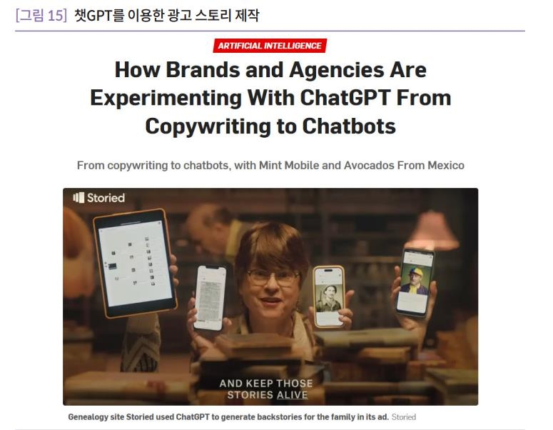 올해 1월에는 챗GPT를 활용한 광고 '당신 이야기에 대한 영광'(Glory to your story)이 탄생하기도 했다.