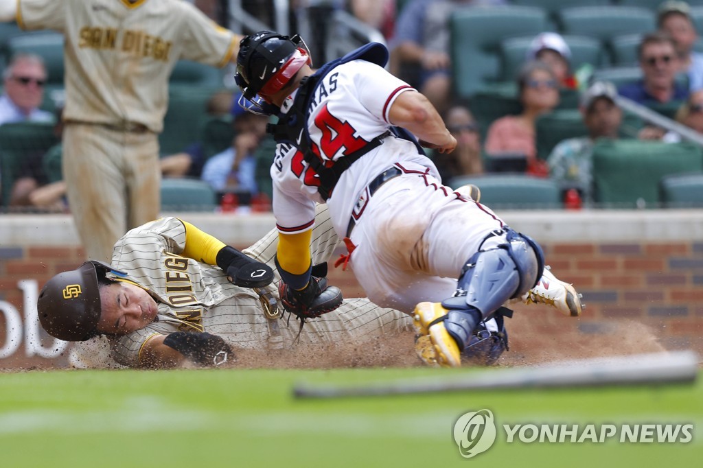 김하성은 16일(한국시간) 미국 조지아주 애틀랜타 트루이스트파크에서 열린 2022 미국프로야구 메이저리그(MLB) 애틀랜타 브레이브스와 방문 경기에 2번 타자 3루수로 선발 출전해 5타수 2안타 1타점 1득점으로 활약했다.