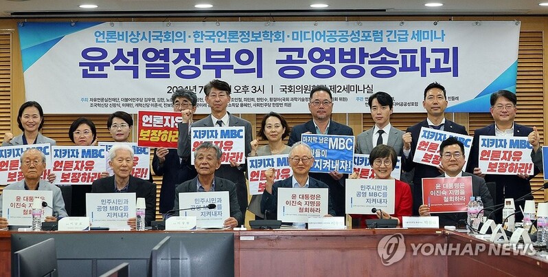 박 직무대행은 "TBS, KBS, EBS, YTN에 이어 MBC마저 윤석열 정권이 장악하면 공영방송 위기가 아닌 심각한 민주주의의 퇴행을 부를 것"이라며 "함께 뜻을 모아 반드시 윤석열 정권의 방송 장악을 저지하겠다"고 다짐했다.