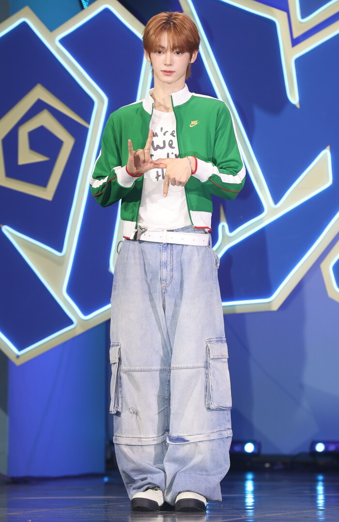 Hanjin, a member of South Korean boy group TWS, poses for a photo during a showcase for the group's fourth mini album "Play Hard" in Seoul on Oct. 13, 2025. (Yonhap)