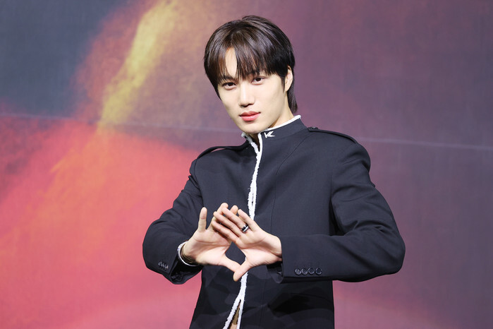 Kai, a member of South Korean boy group EXO, poses for a photo during a showcase to promote his fourth mini album "Wait on Me" in Seoul on April 21, 2025. (Yonhap)