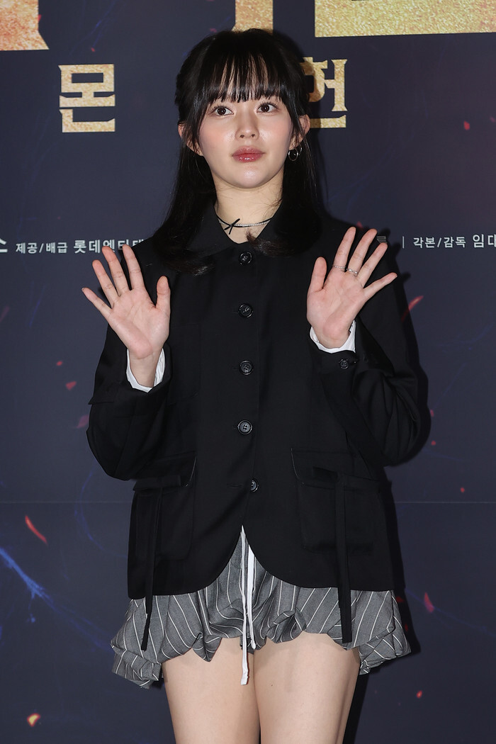 South Korean actress Jung Ji-so, who stars in the new movie "Holy Night: Demon Hunters," poses for a photo during a publicity event in Seoul on April 21, 2025, to promote the movie, set to hit local screens in South Korea on April 30. (Yonhap)