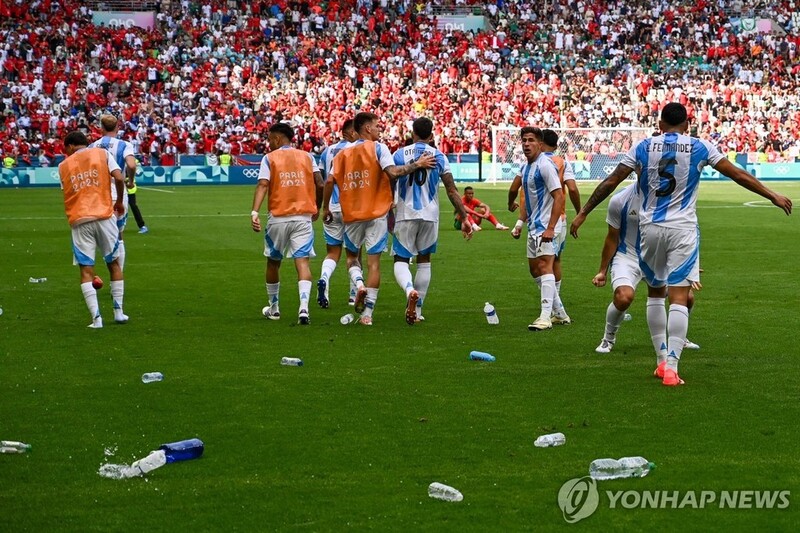 | ▲ 아르헨티나 선수들에게 날아온 물병 [AFP=연합뉴스] |