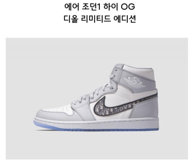 | ▲ 무신사 '에어 조던 1 하이 OG 디올 리미티드 에디션' 래플 상품 [무신사 홈페이지 캡처. 재판매 및 DB 금지] |