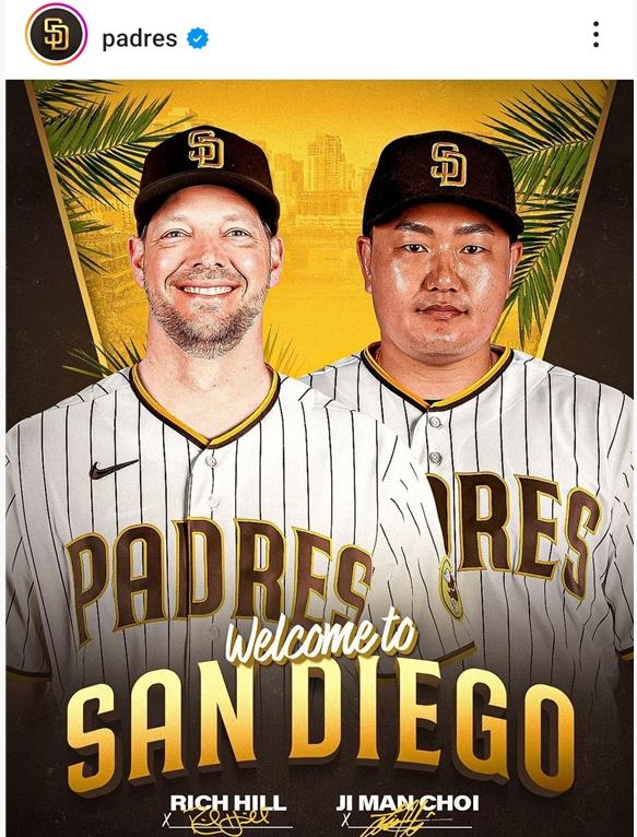 | ▲ 최지만, 샌디에이고로 트레이드 [샌디에이고 파드리스 인스타그램 캡처. 재판매 및 DB금지] |