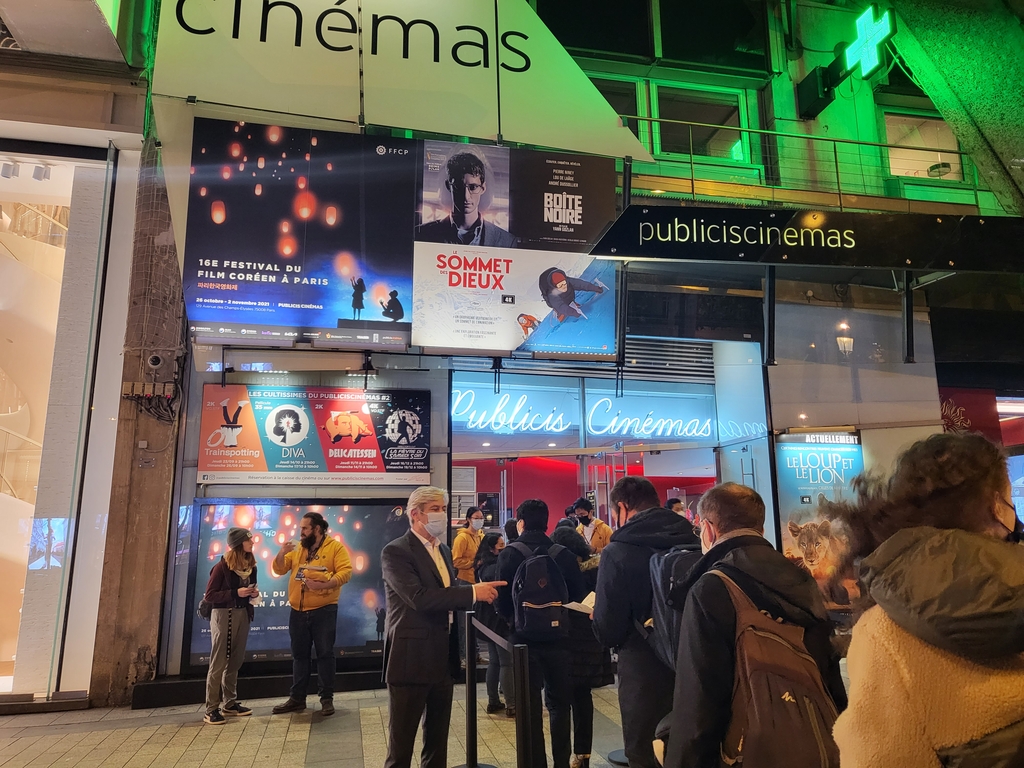 | ▲ 제16회 파리한국영화제에 입장하는 관객들 (파리=연합뉴스) 현혜란 특파원 = 프랑스 파리 샹젤리제 거리 퓌블리시스 극장에서 26일(현지시간) 오후 개막한 제16회 파리한국영화제에 관객들이 입장하고 있다. 2021.10.26 runran@yna.co.kr |