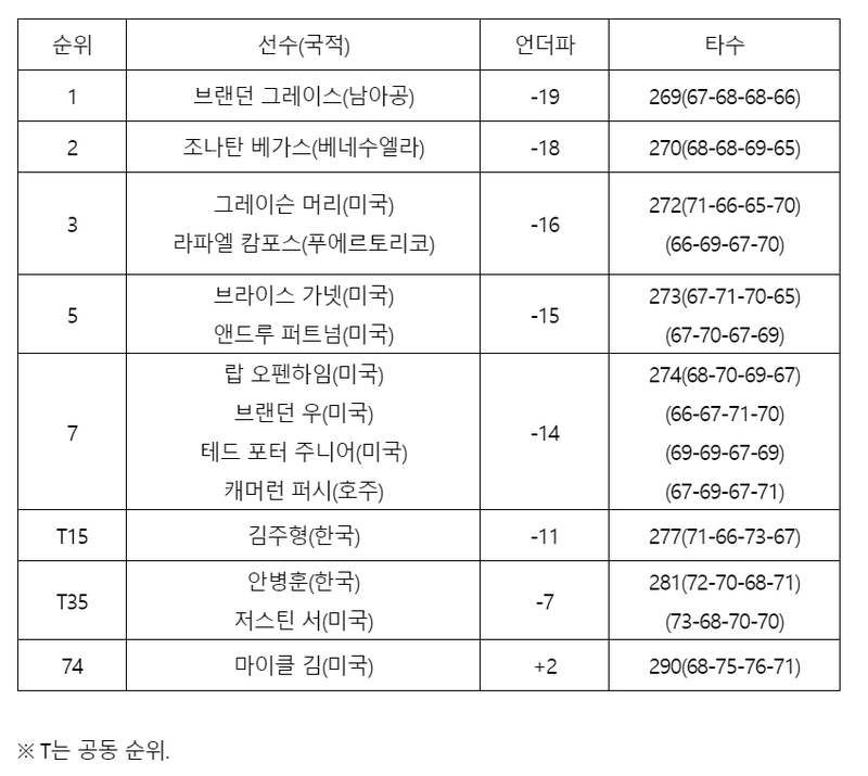 ◇ 미국프로골프(PGA) 투어 푸에르토리코오픈 최종 순위