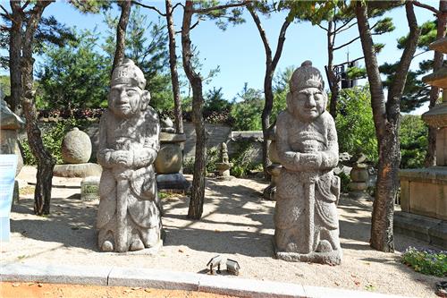 야외 정원에서도 투구와 갑옷을 입고 검을 손에 쥔 장군석을 볼 수 있다.