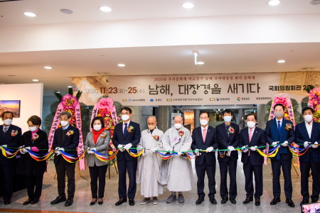 남해군(군수 장충남)은 '팔만대장경'의 판각지가 남해군임을 알리는 전시회를 지난 23일 국회의원 회관 2층 로비에서 개최했다.