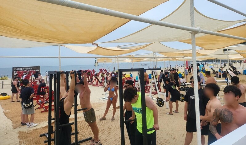 프로모션존에는 해변 야외 헬스장인 '머슬존'이 만들어져 눈길을 끈다.