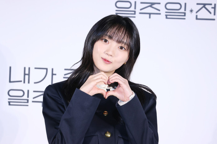 South Korean actress Oh Woo-ri, who stars in the TVing's upcoming romantic fantasy "Way Back Love," poses for a photo during a publicity event in Seoul on April 1, 2025. The first episode of the series will be available on April 3. (Yonhap)