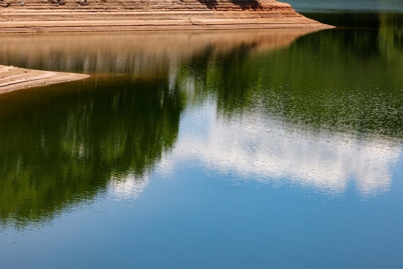 그제야 호수를 바라보니 건너편에 산과 하늘이 거꾸로 비치고 그 경계에 윤슬이 빛나고 있는 모습이 눈에 들어왔다.